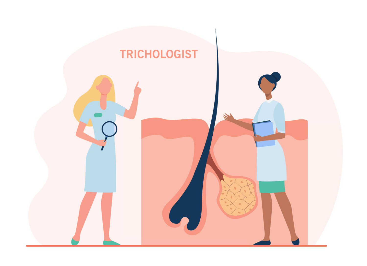Как правило, на приеме трихолог расспросит вас об особенностях ваших волос, вашем привычном уходе и образе жизни, жалобах и пожеланиях. Изучит и оценит состояние ваших волос, волосяных луковиц и кожи головы .При наличии показаний, порекомендует сделать в лаборатории анализ крови для оценки обмена веществ и оценки минерального, аминокислотного и витаминного статуса организма.
